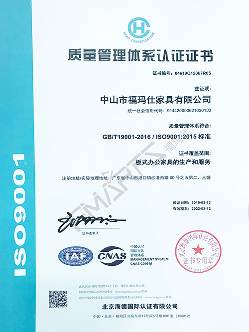 福瑪仕9001質(zhì)量管理體系認(rèn)證證書
