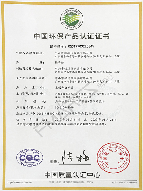 福瑪仕CQC中國環(huán)保產(chǎn)品認(rèn)證證書