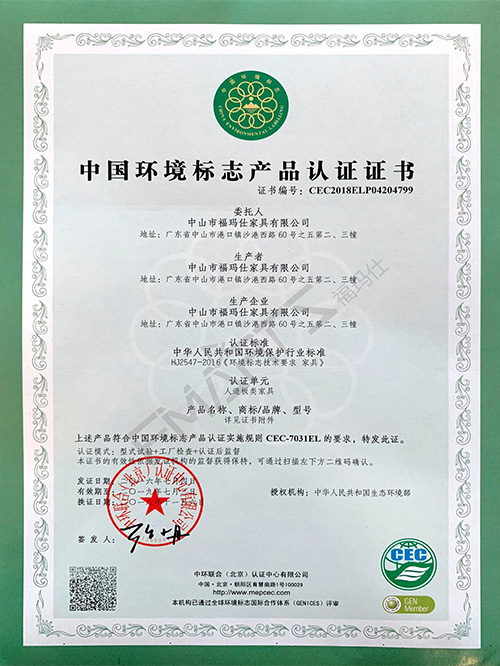 福瑪仕中國環(huán)境標(biāo)志產(chǎn)品認(rèn)證證書